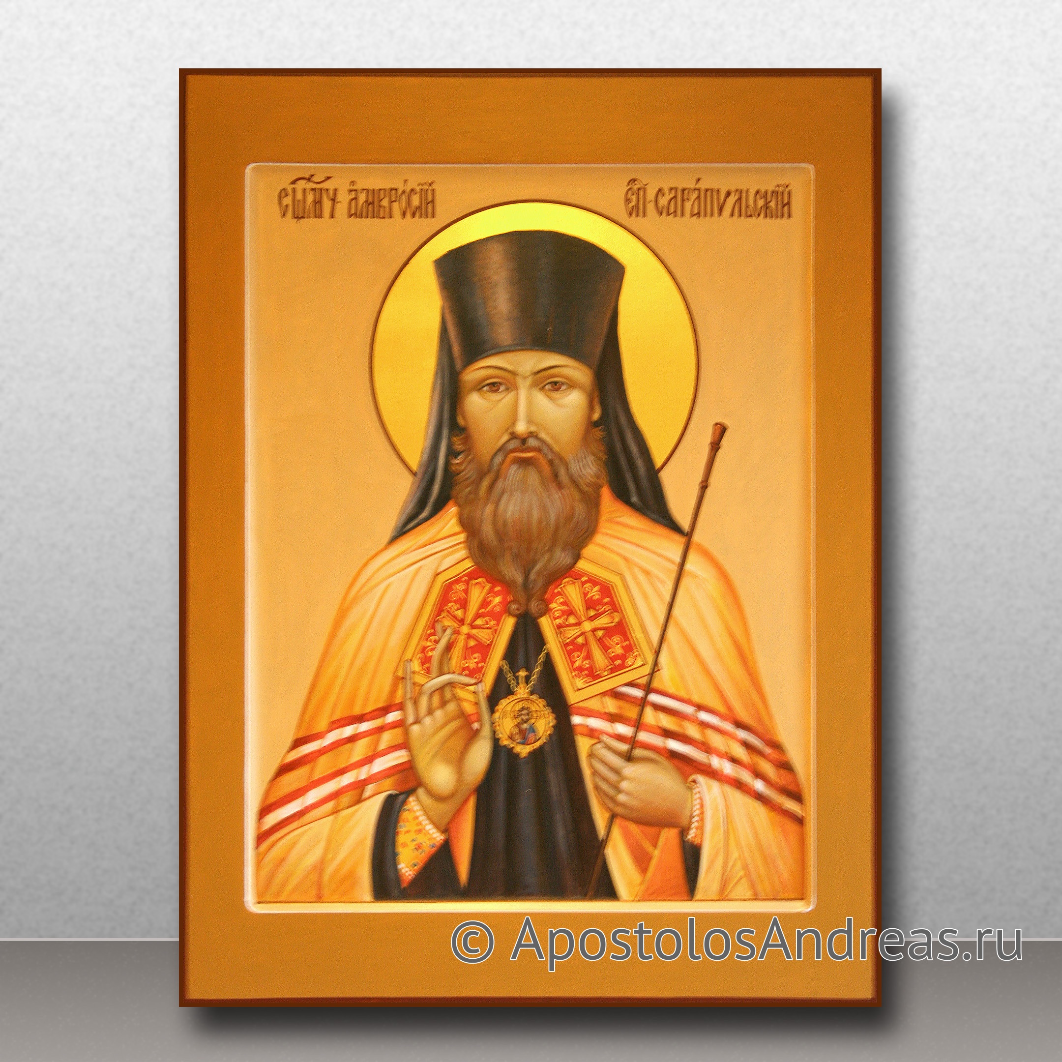 Священномученик Амвросий, епископ Сарапульский (в миру Василий Гудко) родился в Люблинской губ. в 1867 г. 18 марта 1917 г. владыка был уволен на покой в Свияжский монастырь Казанской епархии. Весной 1918 г. большевики устроили в мо настырском дворе специальный пункт конного завода и в часы обедни ржание жеребцов и кобыл перекрывало монашеское пение. Владыка пошёл к местному комиссару и заявил: «Не допущу вашего кощунства у храма, где почивают мощи святителя Германа. Если вы не уберётесь, то ударю в набат, соберутся мужики и всех вас прого нят из монастыря». Вскоре архиерей был арестован и отправлен в Казань. Но рабочие местных заводов пригрозили забастовкой и власти по просьбе епископа Чистопольского Анатолия (Грисюка, ныне канонизированного) выдали святителя на поруки. Владыка Амвросий говорил: «Мы должны радоваться, что Господь привёл нас жить в такое время, когда мы можем за Него пострадать. Каждый из нас грешит всю жизнь, а краткое страдание и венец мученичества искупят грехи всякие и дадут вечное блаженство, которое никакие чекисты не смогут отнять». 9 августа 1918 г. владыка вернулся в Свияжск, там его арестовали и вывезли на станцию Тюрлем, где располагался штаб частей Красной армии. Через несколько часов, посреди нескошенного поля, келейник святителя Иов (Протопопов) нашёл тело архипастыря с множеством штыковых ранений, с вывернутыми в плечах, локтях и кистях руками. Он предал его честные останки земле и больше двух десятилетий (до 1930 г., когда крестьянский надел отошел колхозу) платил хозяину угодий, чтобы тот не вспахивал поле, где покоился прах священномученика. Сам о. Иов был расстрелян в 1931 г. в Раифской пустыни (па мять 25 марта). Святитель Амвросий причислен к лику новомучеников и исповедников Российских на Юбилейном Архиерейском Соборе Русской Православной Церкви в августе 2000 г. для общецерковного почитания. Память совершается 9 августа.