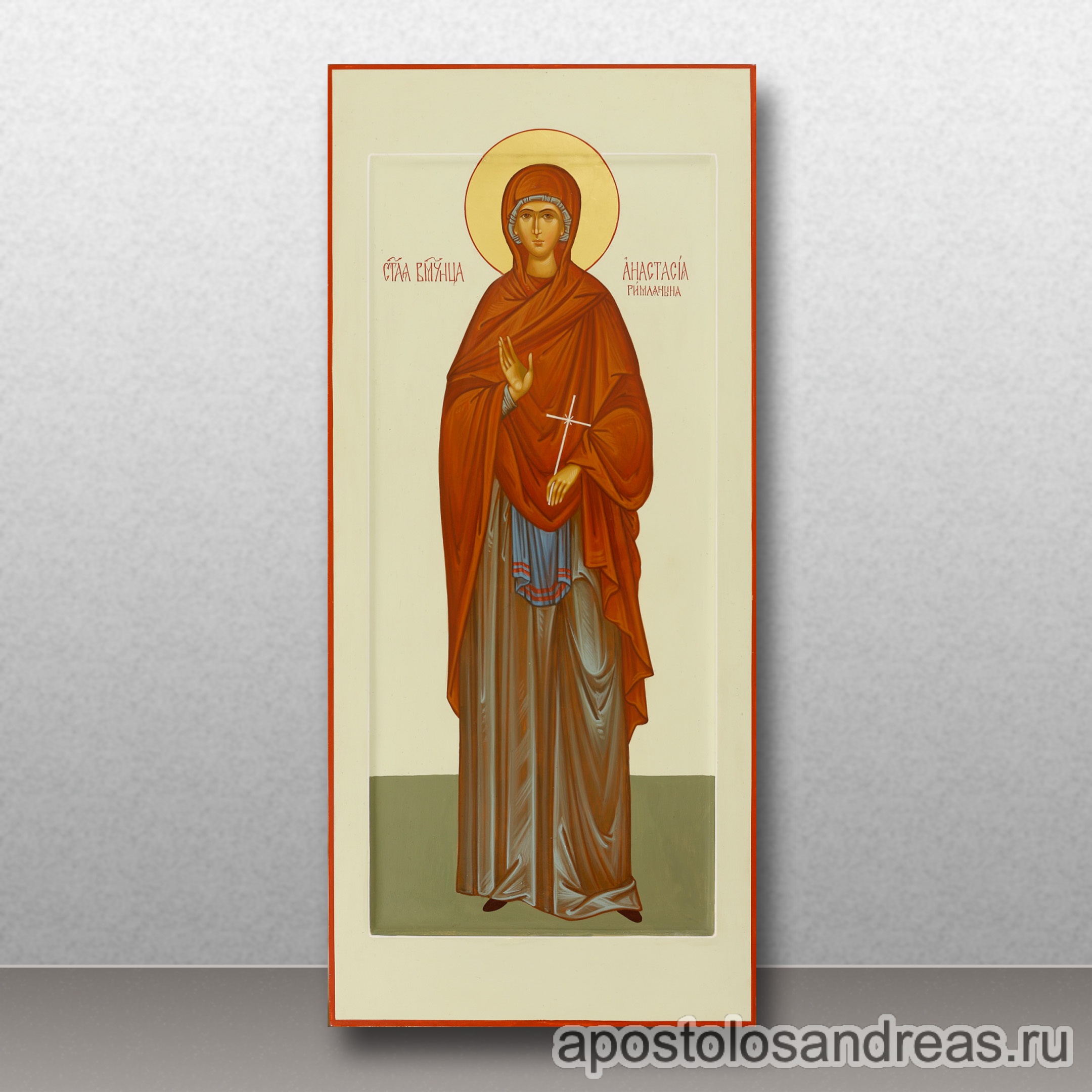 Анастасия Солунская Римляныня Преподобномученица – небесная покровительница женщин, крещенных этим именем. Перед ее ликом молятся об укреплении веры, избавлении от сомнений, тяжких воспоминаний, печалей и уныния. Также икона исцеляет при женских и суставных заболеваниях. Многие утверждают, что Святая Анастасия Римляныня помогает сохранить домашний скот от кражи и болезней. Купить икону Анастасии Римляныни, исполненную с соблюдением всех канонов, вы можете в нашей иконописной мастерской.