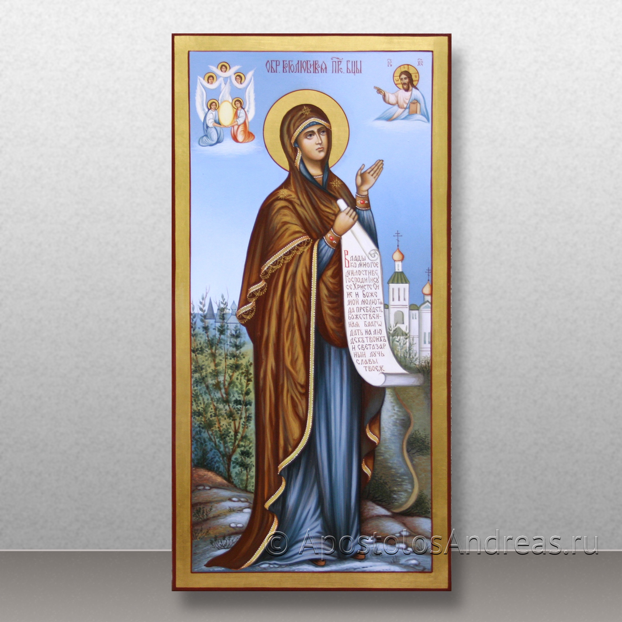 Рукописная икона Боголюбская Божия Матерь на заказ.