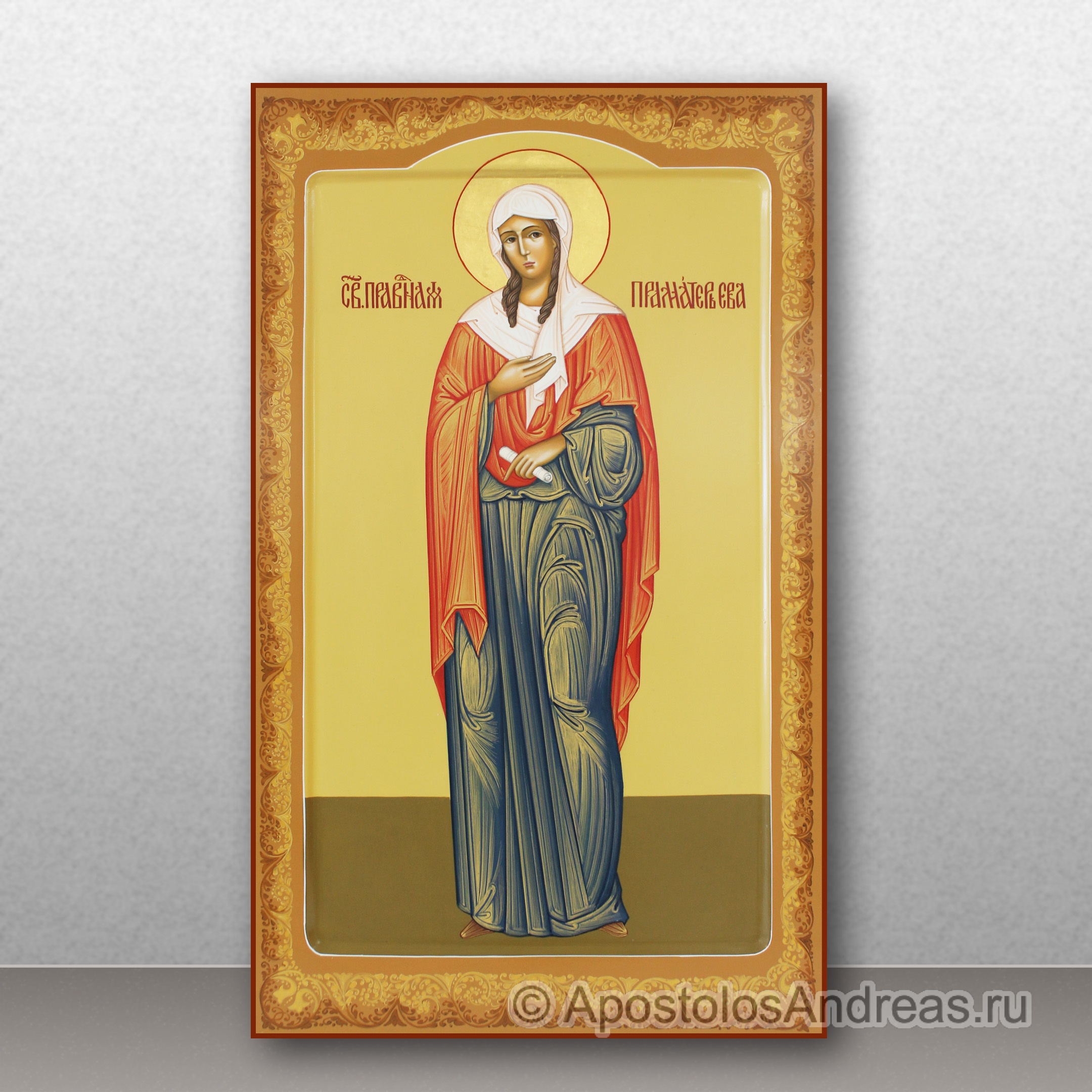 Одной из самых легендарных фигур в мире является Ева Праматерь. Женщина, сотворенная из ребра Адама, его жена – таково описание образа, которое известно каждому человеку. Будучи мужем и женой, влюбленные в Эдемском саду радовались жизни, но в изгнании им пришлось познать истинное зло. Превратившись из властителей мира в обычных рабов, Адам и Ева раскаялись в грехах своих и непослушании, а остаток жизни провели в поклонении Спасителю. Купить рукописную икону Евы Праматери вы можете в нашей мастерской.