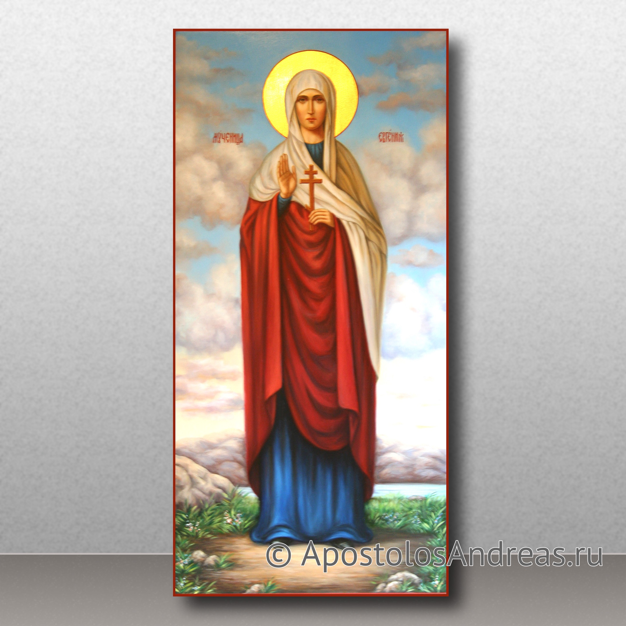 Известно, что Евгения была римлянка и жила в Александрии. Ее отец, Филипп, был послан императором Коммодом в Египет. Евгения была образованной и красивой, многие юноши хотели жениться на ней, но она не хотела выходить замуж. После прочтения Посланий апостола Павла, она обратилась к христианству и решила стать монахиней. Она ушла в мужской монастырь, прихватив с собой двух рабов, Прота и Иакинфа. Там они приняли Святое Крещение и Епископ Элия благословил Евгению на святое служение.