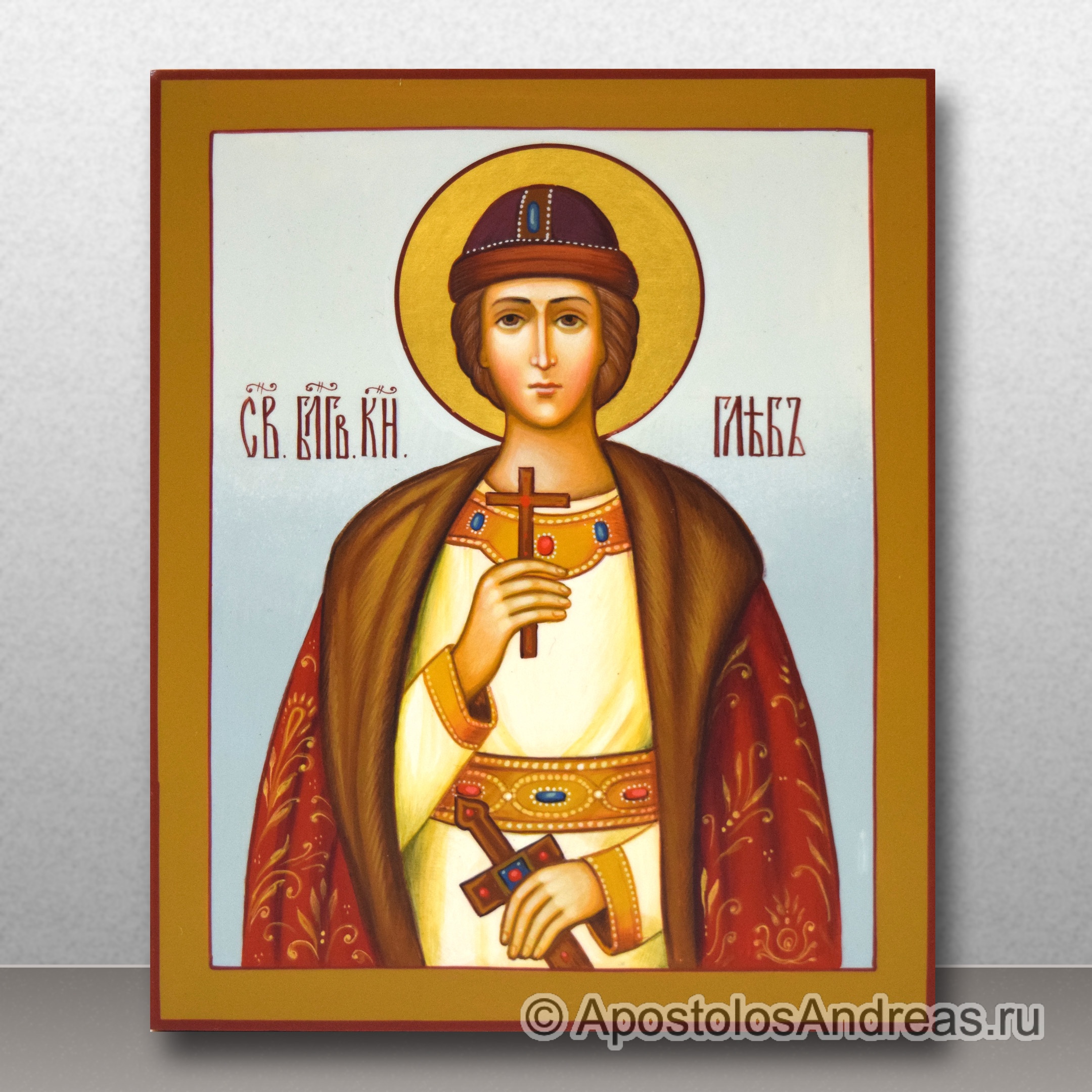 Икону Святого Глеба (князя благоверного Глеба, или Георгия Владимирского) считают одной из самых старых изображений прославленных мирян Киевской Руси. Это один из двух братьев –страстотерпцев (второй брат – Борис – также возведен в ранг святых). Днем чествования святого считают 2 мая. Купить икону Глеба Благоверного вы можете в нашей мастерской.