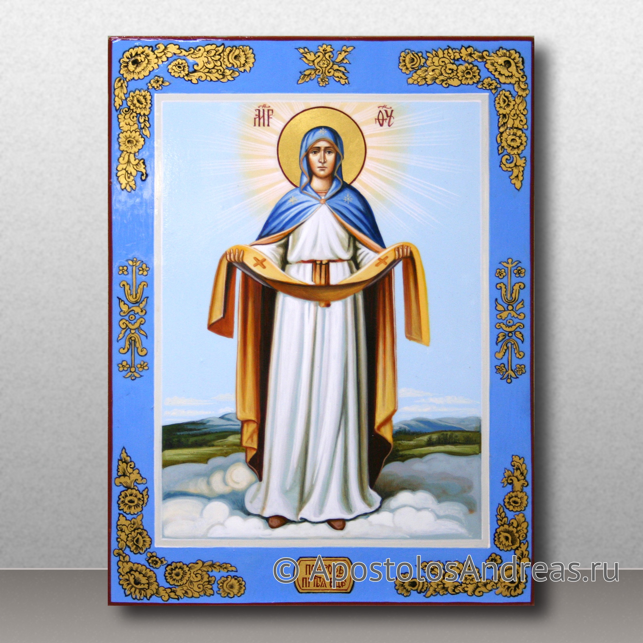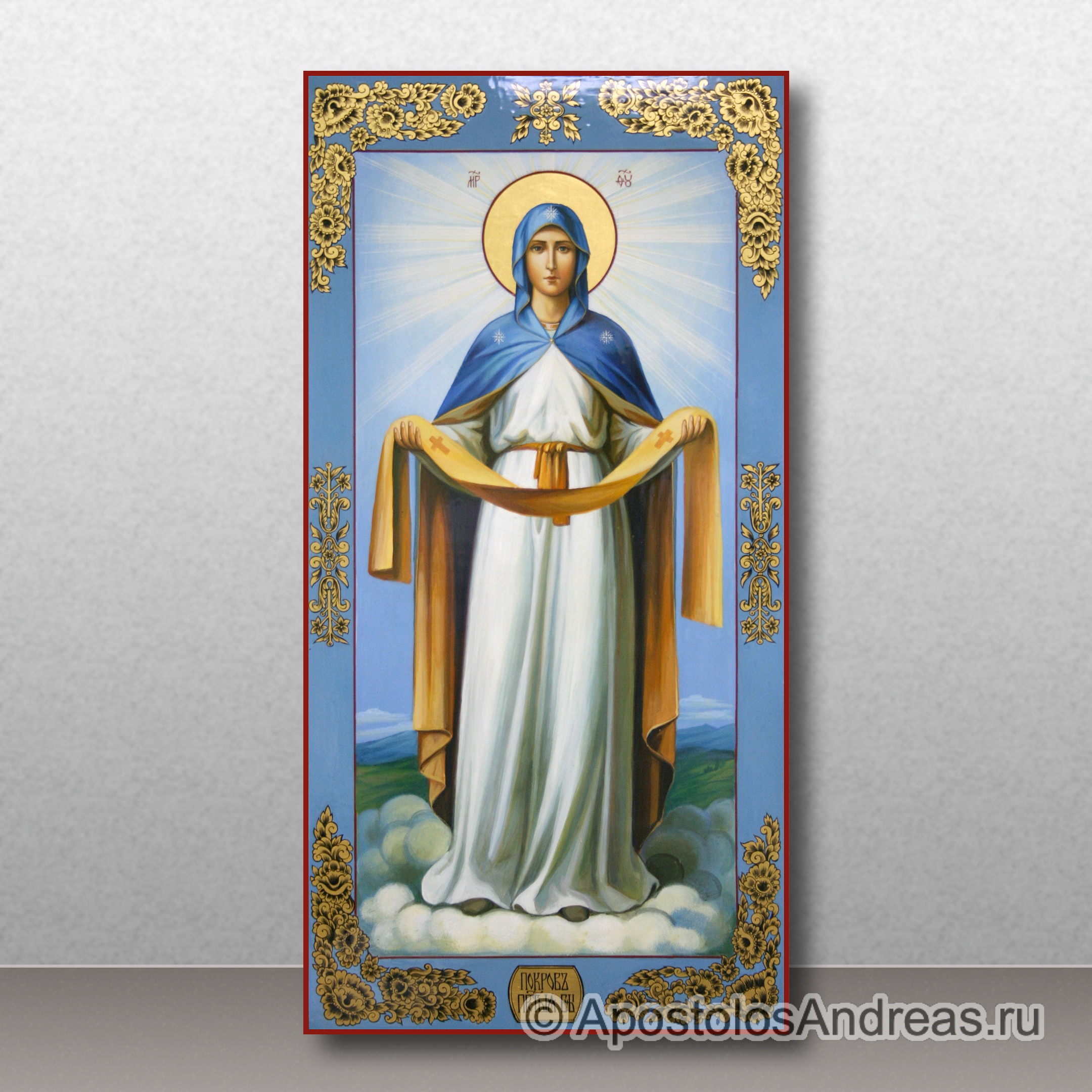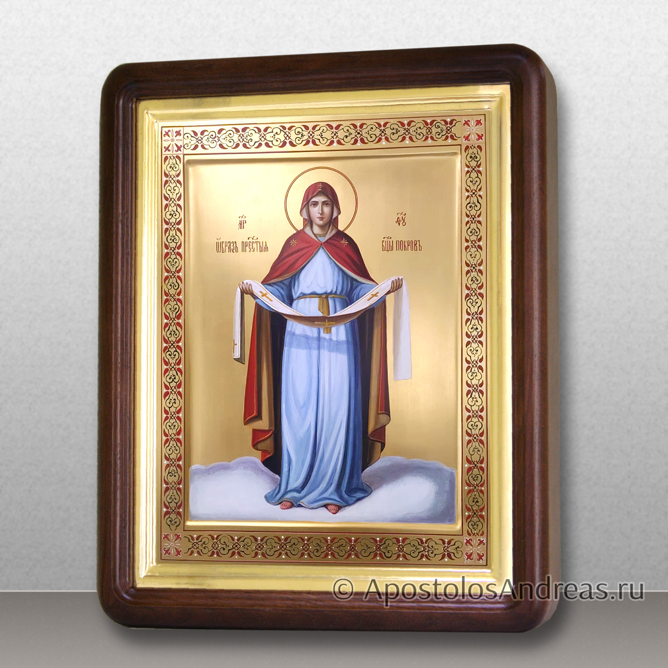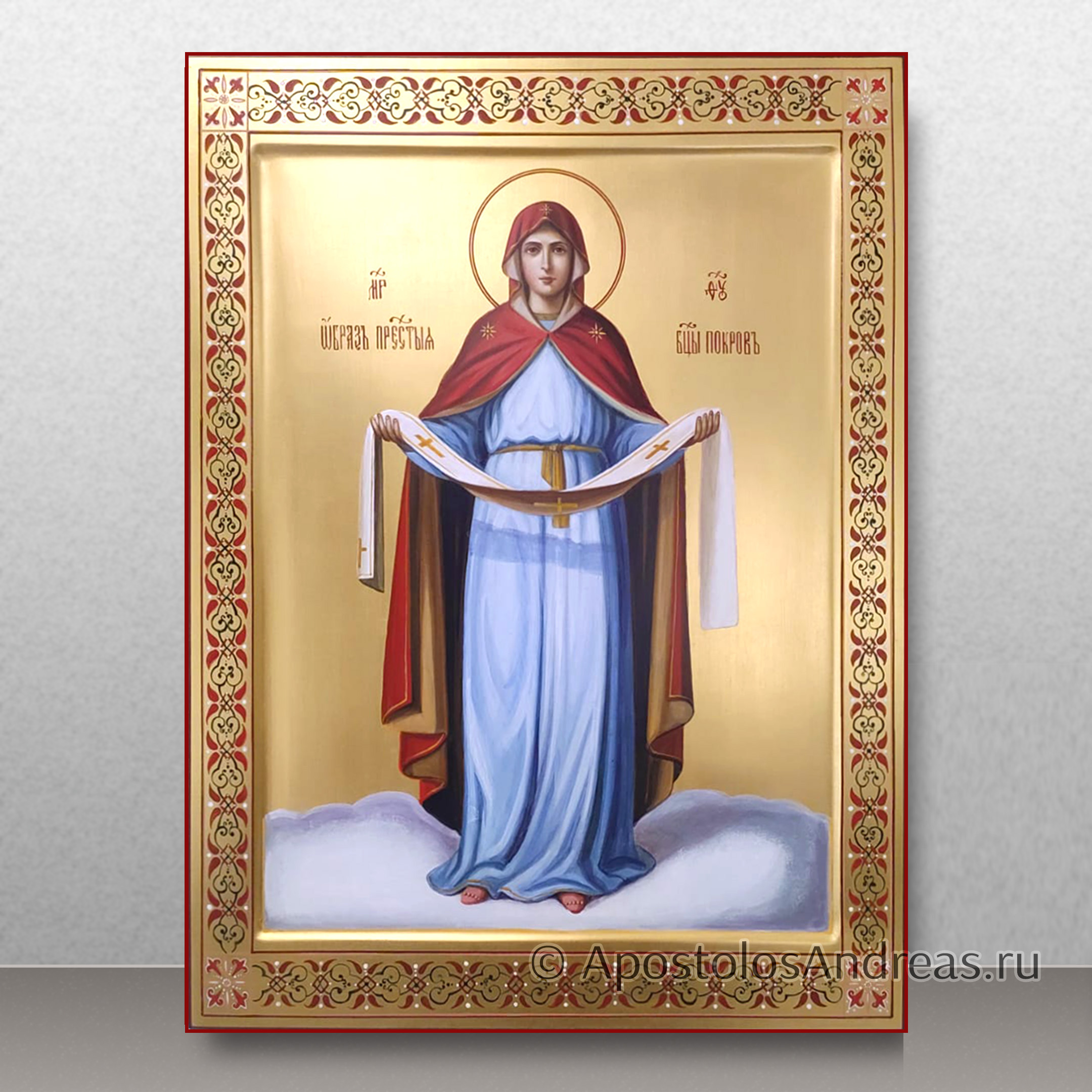 Покров – великий праздник, имеющий огромное значение для православных христиан. Икона Покрова Пресвятой Богородицы символизирует спасение Константинополя в ночь, когда на город напали. Тогда Святому Андрею явилась Царица Небесная, которая стала слезно молиться о спасении жителей от смерти, а Константинополя – от неизбежного разрушения. Все присутствующие на тот момент горожане ощутили спокойствие и благодать, когда Богородица окончила молитву. В тот же миг вражеские войска отступили, а город был спасен. В нашей мастерской вы можете заказать рукописную икону Покрова Пресвятой Богородицы для домашнего иконостаса.