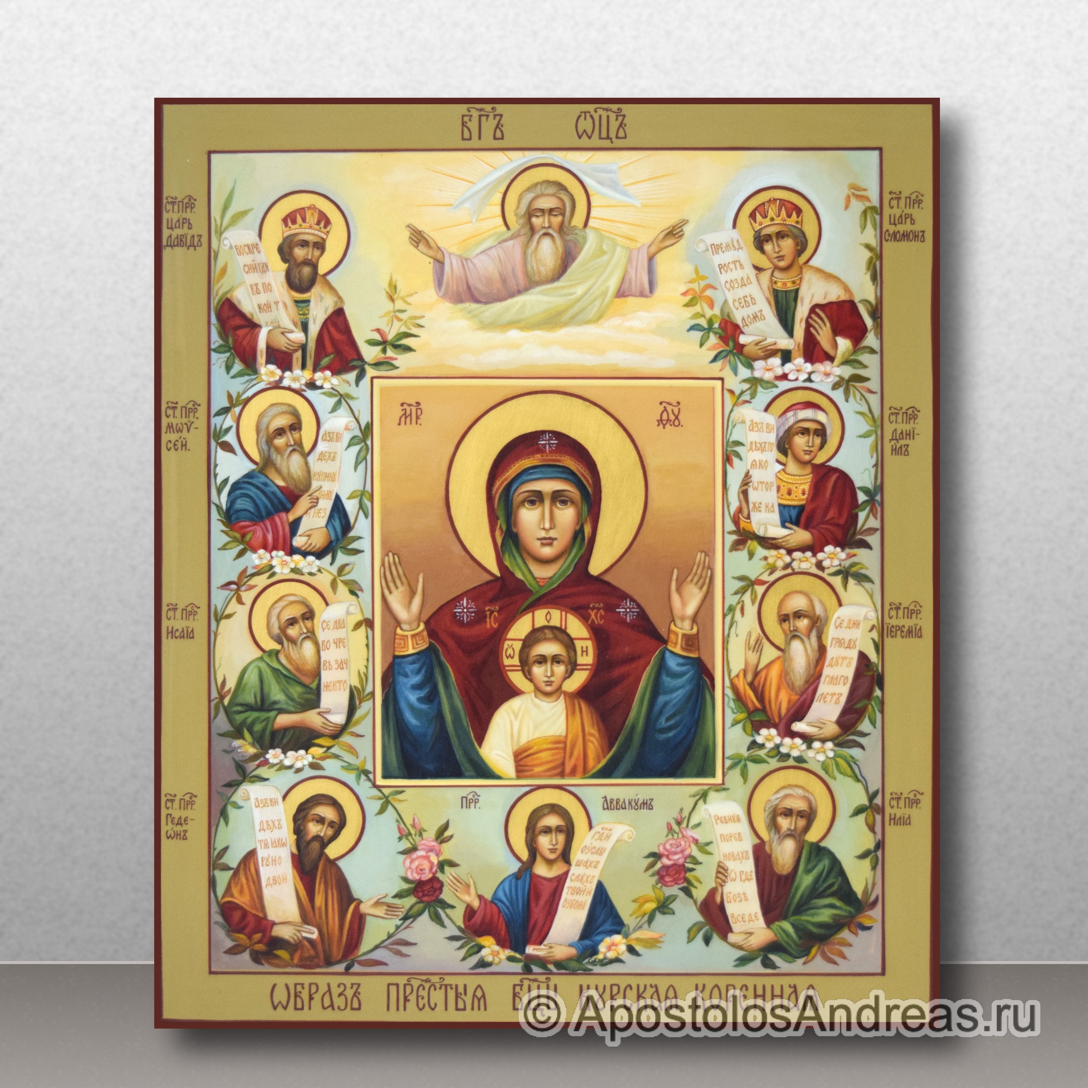 Икона «Знамение» Курская Коренная является образом, почитающимся во всем мире. На святом полотне изображена Богородица, руки которой раскрыты в молитве за всех подданных. Этот образ получил название в знак великой милости Божией Матери к простым христианам.Купить икону ручной работы можно в нашей мастерской.