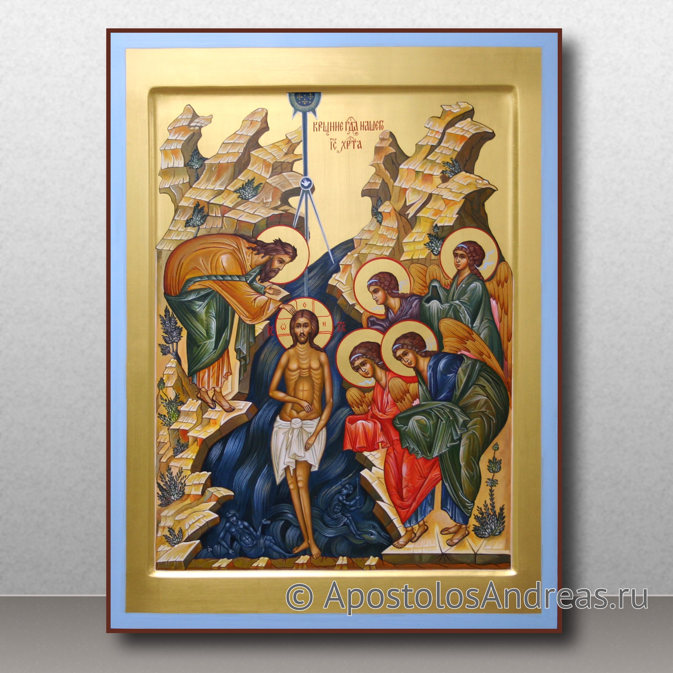 - Вода реки Иордан изображена вокруг Иисуса. Иногда в реке можно увидеть изображение различных водных существ, что символизирует очищение всего творения.