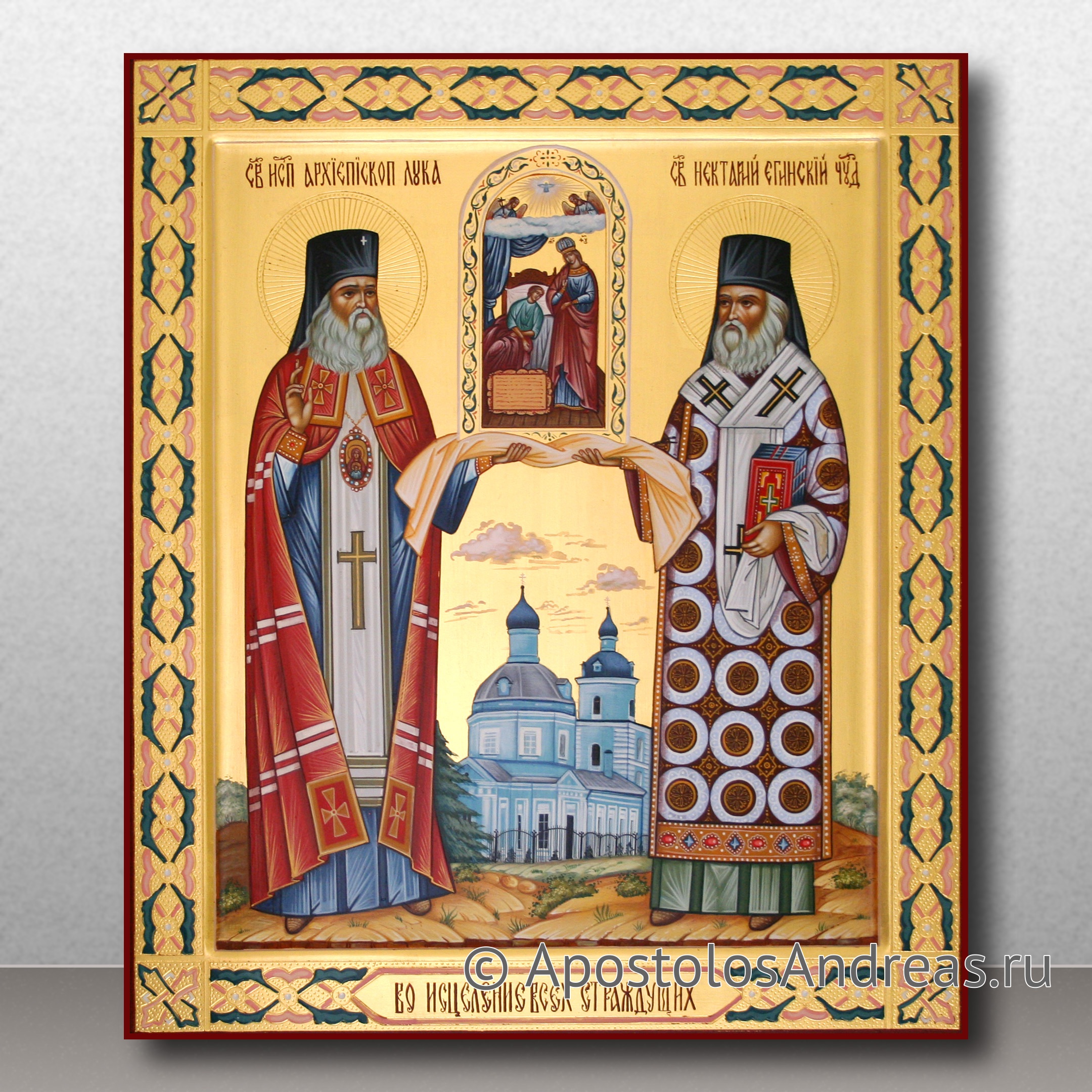 Рукописная икона Лука Крымский и Нектарий Эгинский на заказ.