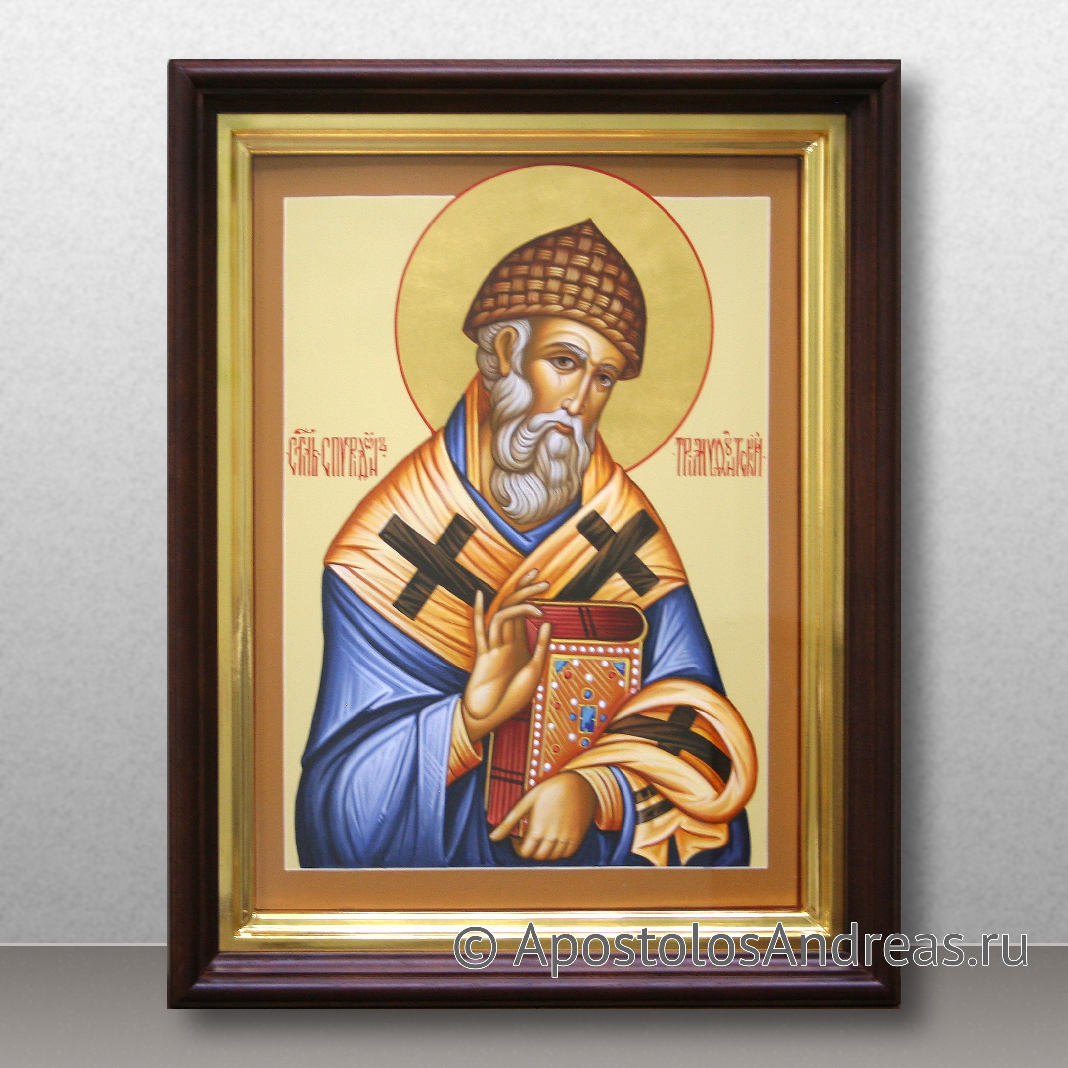 Святитель Спиридон Тримифунтский родился в конце III века на Кипре. О его жизни сохранилось немного сведений. Известно, что он был пастухом, имел семью и всегда помогал нуждающимся, раздавая им свои средства. За эту милосердие Господь даровал ему чудотворную силу — святитель исцелял неизлечимо больных и изгонял бесов.