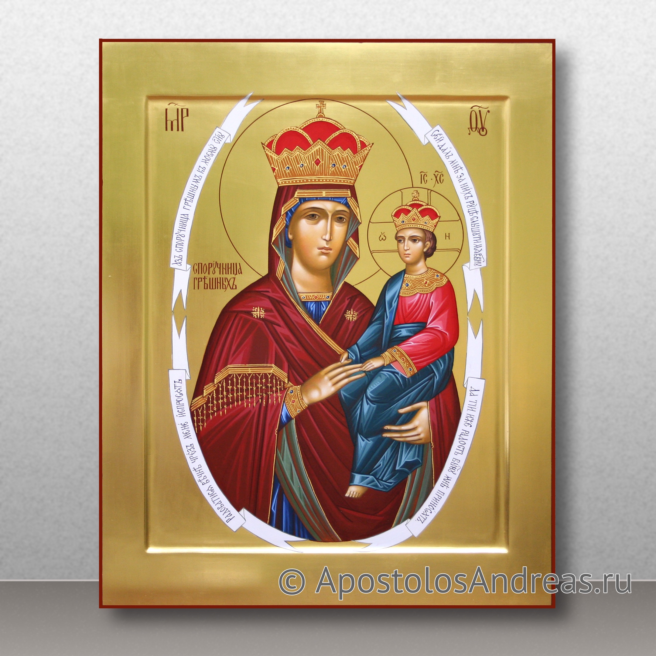 Икона "Споручница грешных", так названная из-за надписи на ней: "Аз Споручница грешных к Моему Сыну...", приобрела свою известность в середине 19-го века благодаря чудесам, произошедшим в Николаевском Одрине мужском монастыре в Орловской губернии. Эта древняя икона Богоматери, из-за своей долгой истории, долгое время стояла в заброшенной часовне у ворот монастыря и не привлекала должного внимания.
