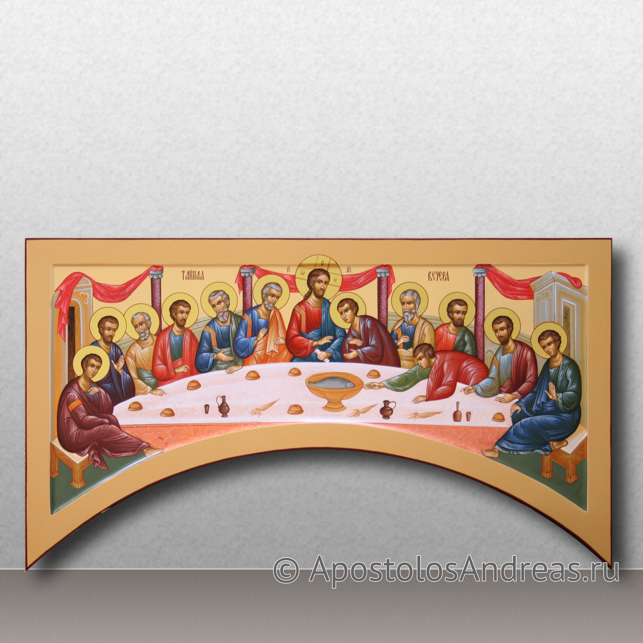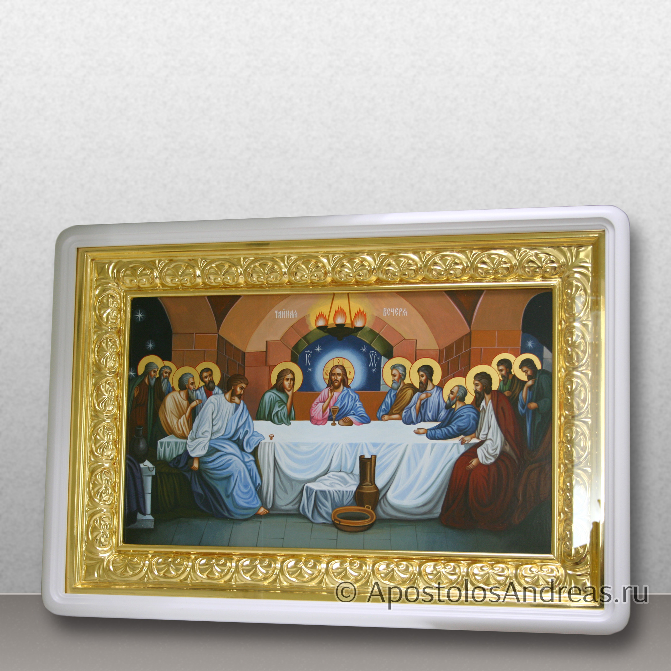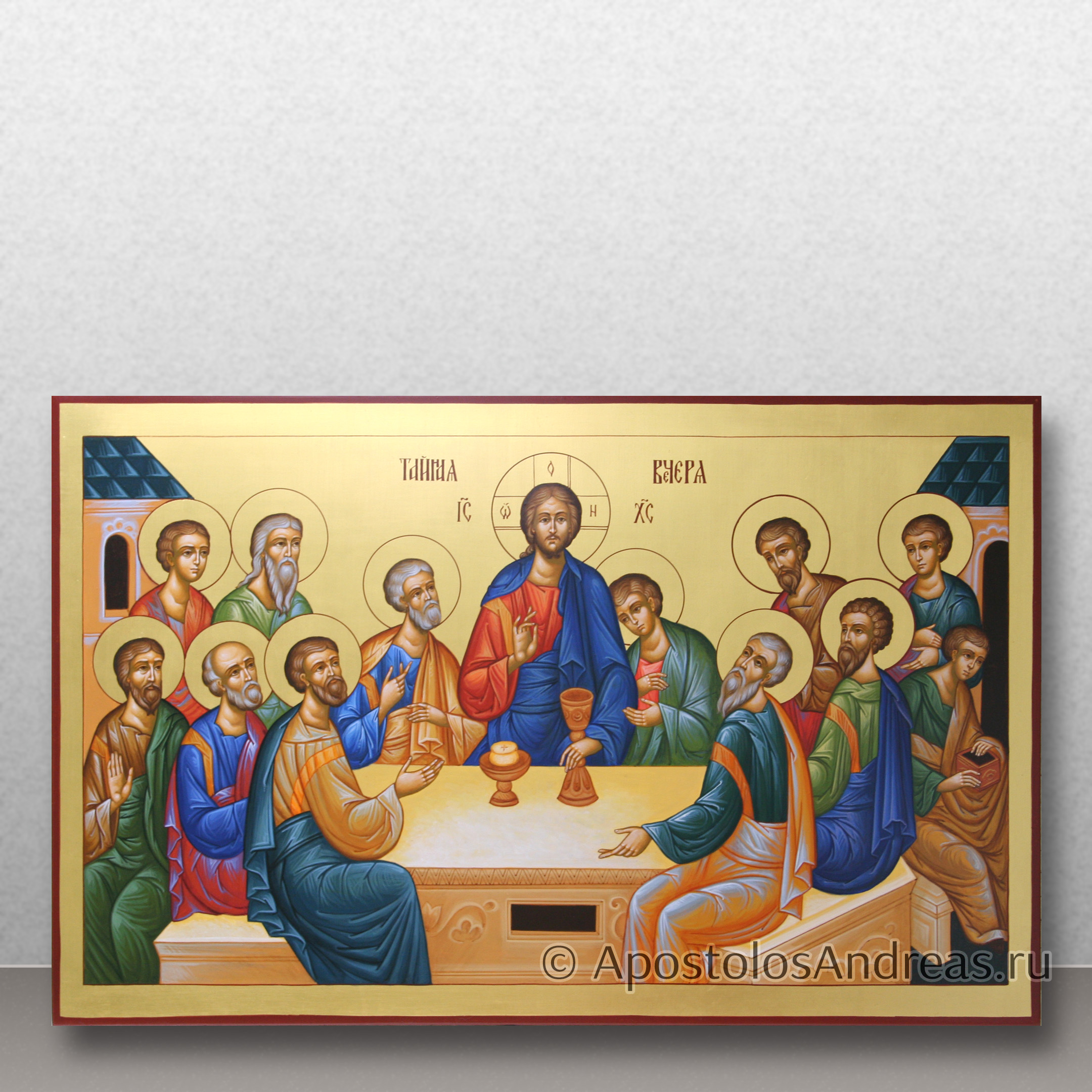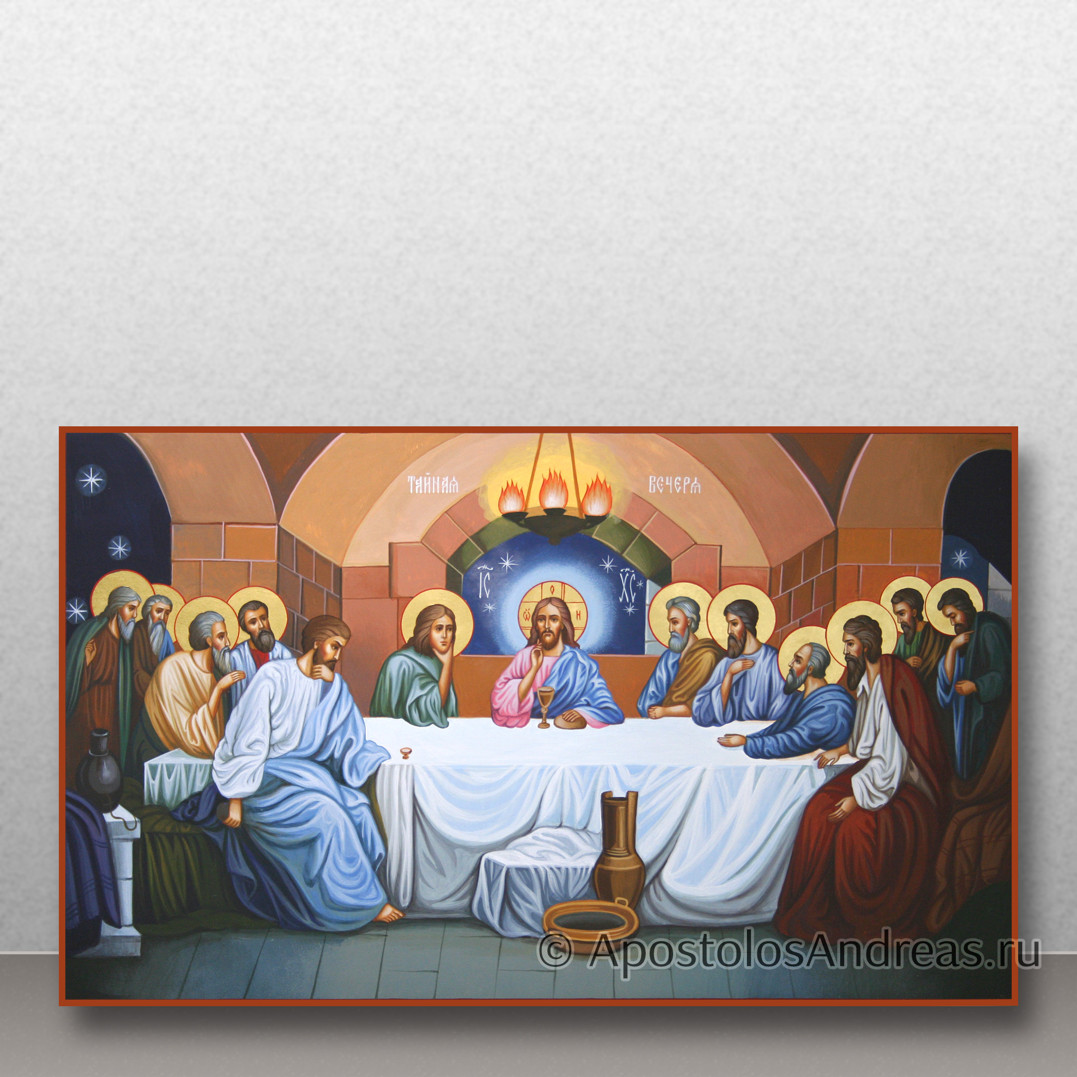Икона "Тайная вечеря" изображает важное евангельское событие, когда Иисус Христос совершил последнее пасхальное празднование с учениками перед своим распятием. Эта икона является значимым символом в христианском искусстве и богословии, олицетворяя установление Таинства Евхаристии.