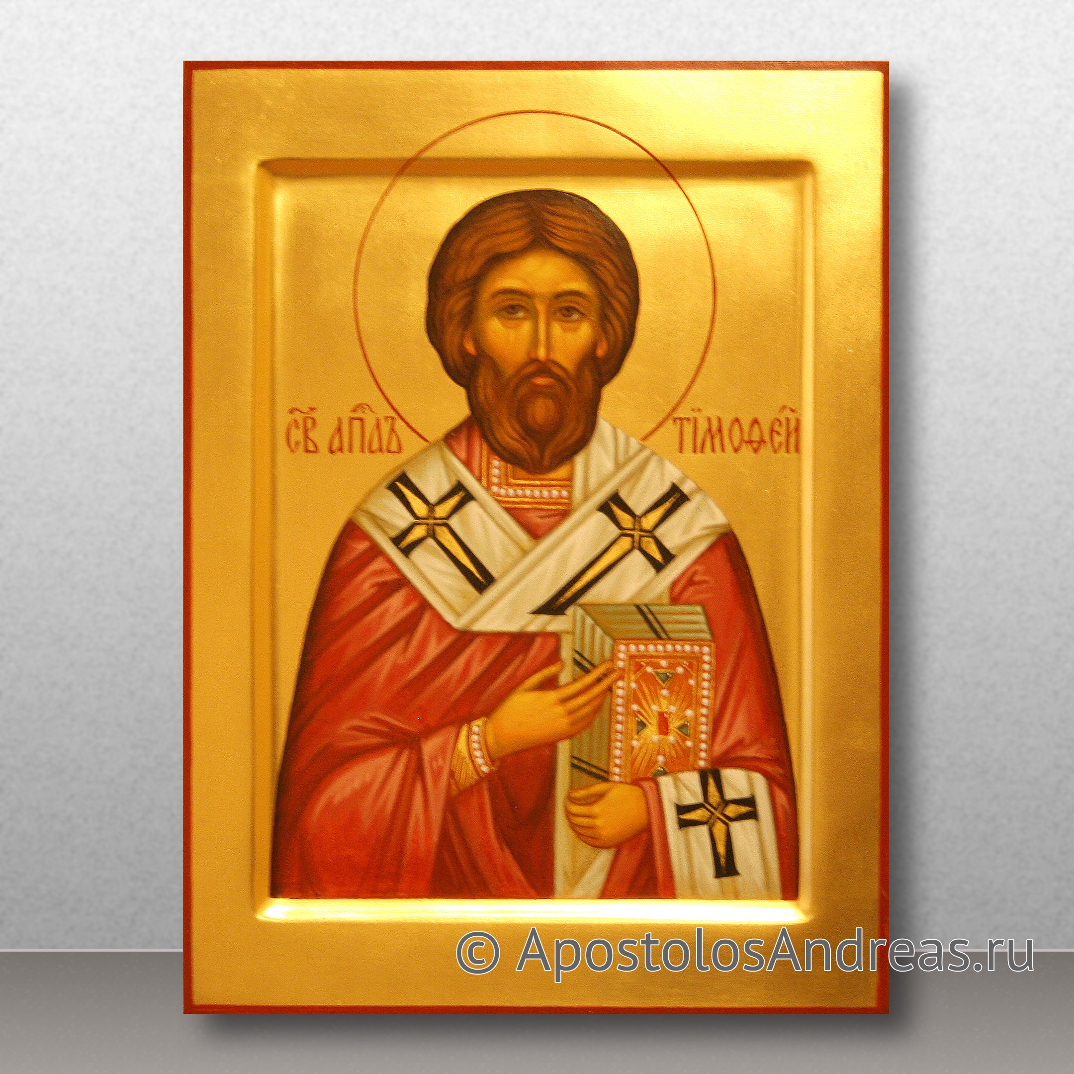 Апостол Тимофей был епископом Эфесским и жил в I веке (+80). Во время миссионерского путешествия апостола Павла, когда он проповедовал Евангелие в Листрах и произвел чудо исцеления у человека, страдавшего с рождения, многие жители Листр уверовали в истинного Бога. Одна иудейка пригласила апостола в свой дом и поручила ему своего сына Тимофея, умоляя взять его под свою опеку. С этого момента Тимофей стал преданным спутником и соратником Павла, а также любимым учеником. Вместе они несли трудности, подвергались преследованиям, посещали города Греции и Малой Азии, где проповедовали с искренним рвением. Когда апостола заключили в темницу в Риме и предстояло его казнить, именно Тимофея он призвал на последнюю встречу перед смертью.