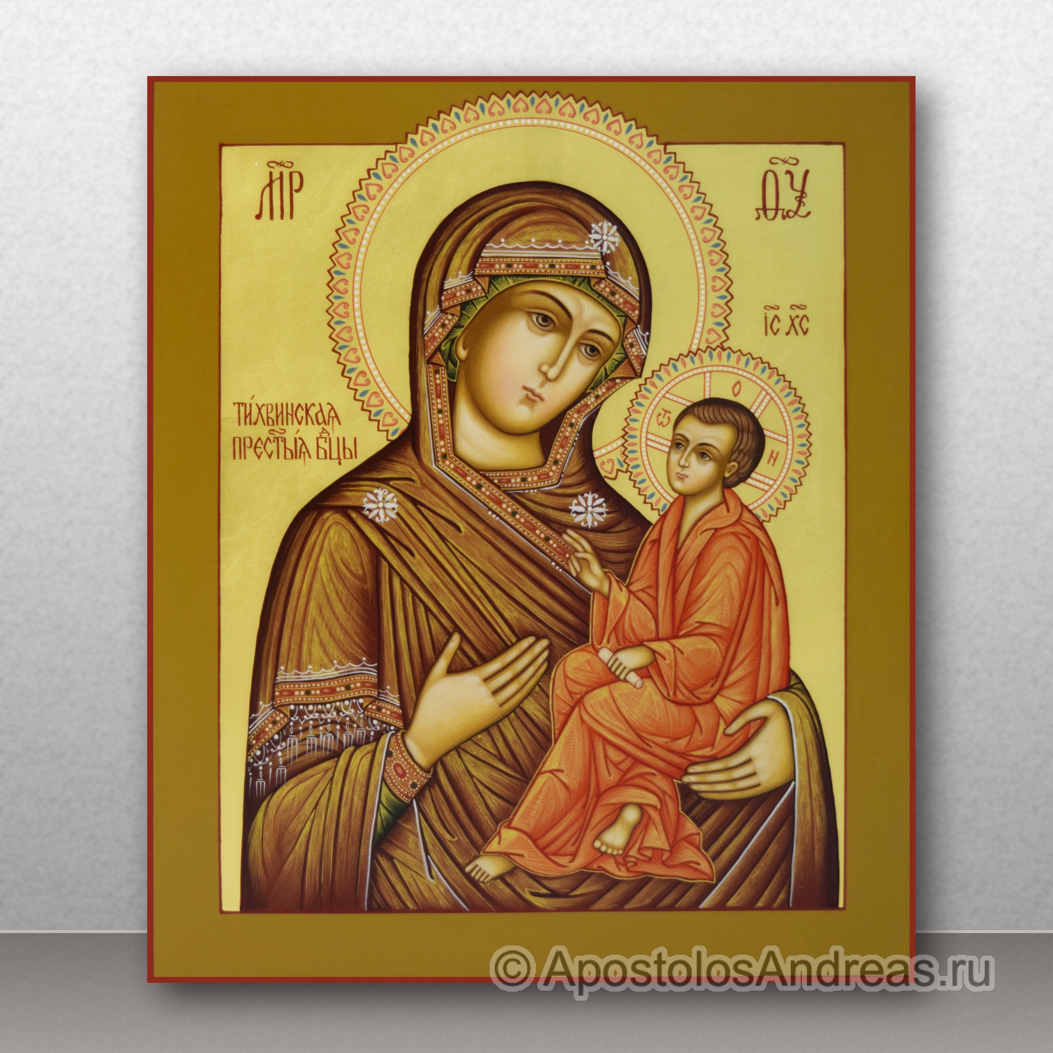 Рукописная икона Тихвинская Божия Матерь на заказ.