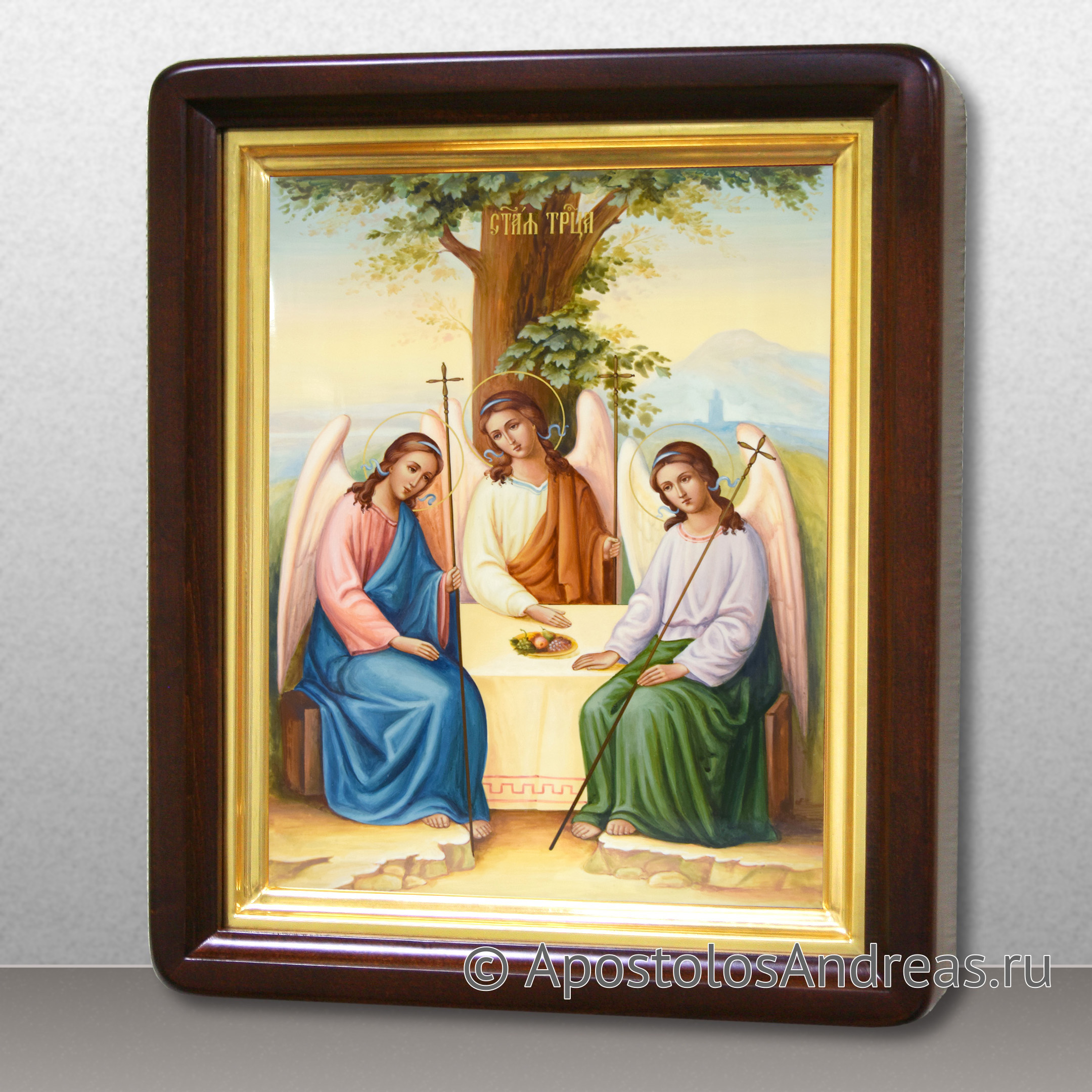 Икона "Святая Троица (реализм)" в киоте является важным примером синтеза традиционного религиозного искусства и реалистического стиля, появившегося под влиянием западноевропейской живописи. Киот подчеркивает её значимость и защищает от времени и внешних воздействий. Такая икона не только украшает пространство, но и служит важным духовным инструментом, способствующим углублению веры и понимания божественной природы.