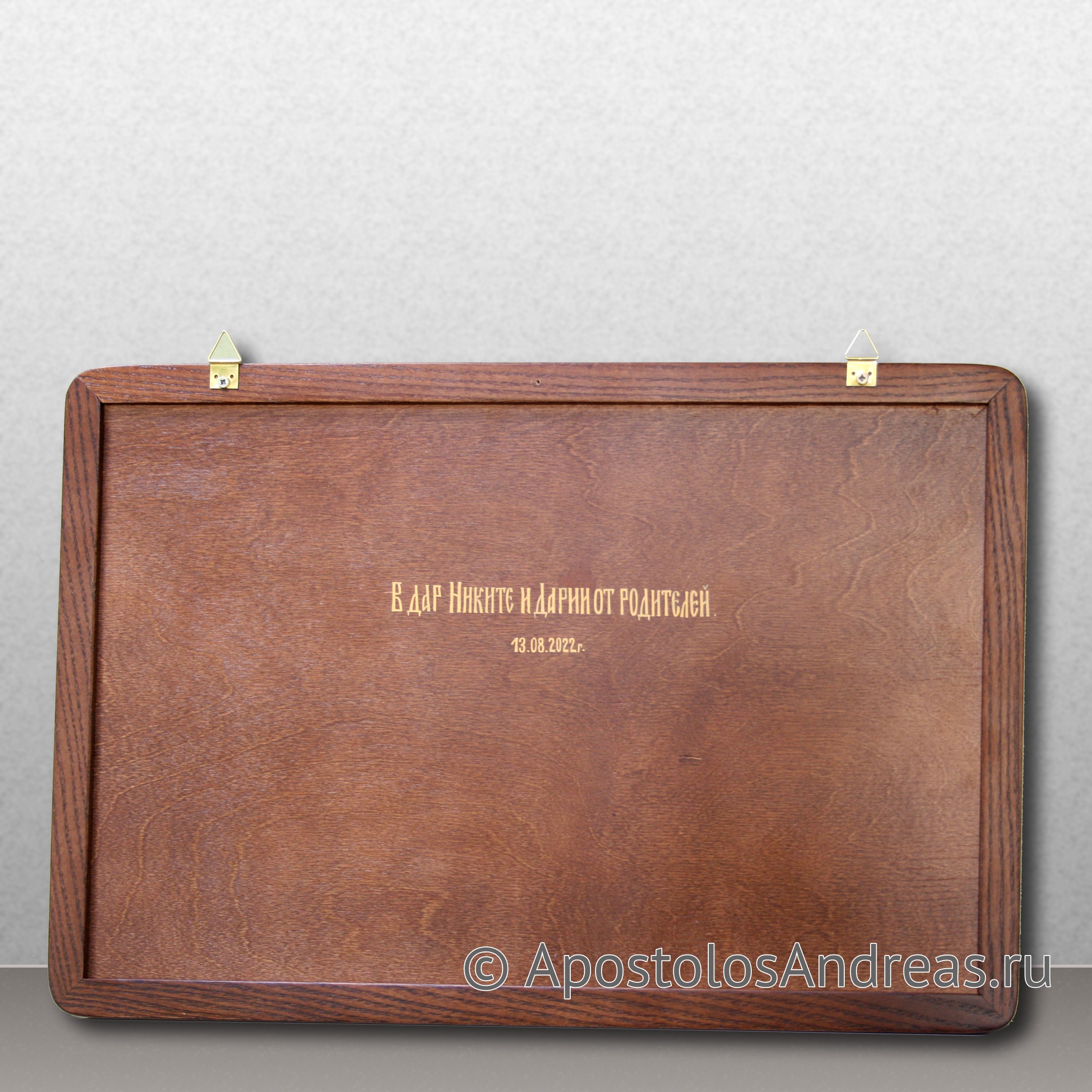 На вашу икону можно сделать подарочную табличку и установить мощевик по-согласованию.