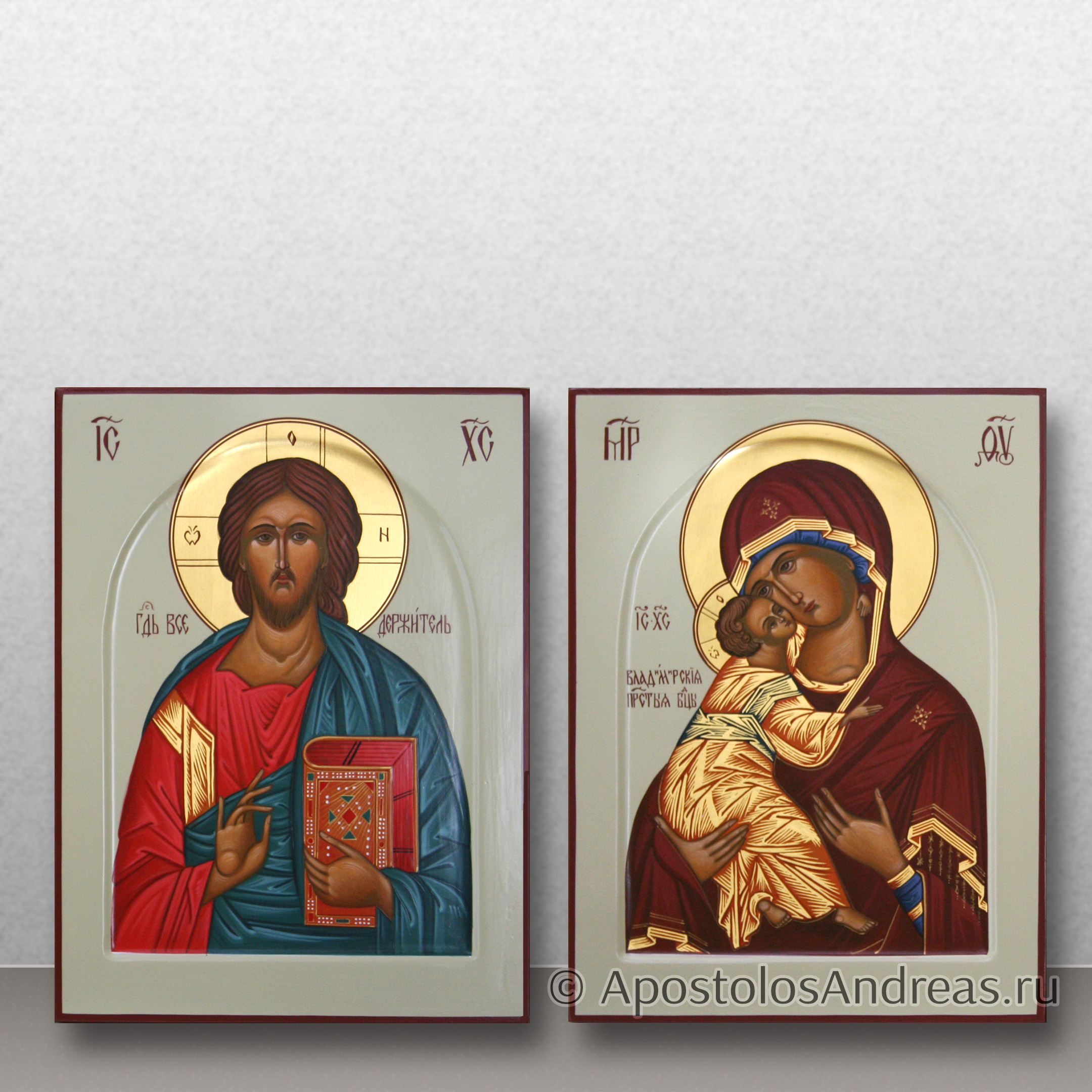 Рукописная Венчальная пара #66 - Владимирская и Спаситель. Темперное письмо на заказ.