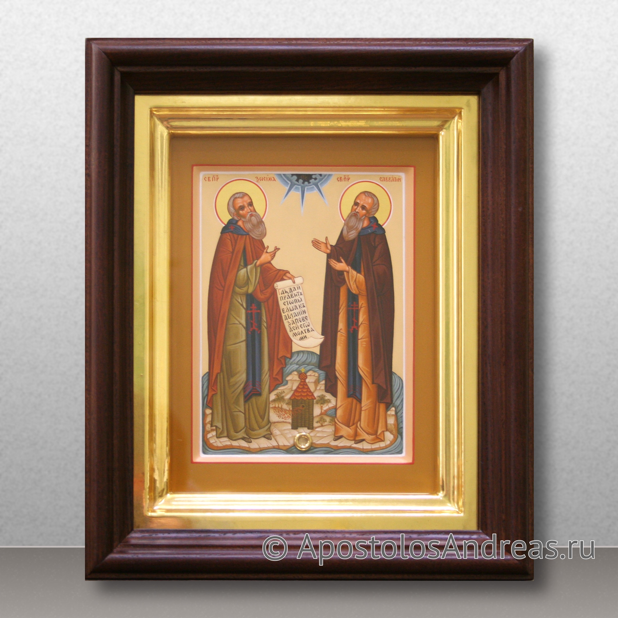 Существует несколько вариантов их написания. Наиболее популярным является изображение святого в полный рост. Между двумя руками находится белый храм. Это символ монастыря, основанного преподобными. Над их головами изображена Богоматерь на облаке, благословляющая их. Многие считают иконы Зосимы и Савватия божествами-покровителями пчеловодства. Поэтому те, у кого есть пасека, часто посещают их и надеются на значительное улучшение в управлении пасекой. Первое обращение происходит после зимней спячки и затем в течение всего года. Перед окончанием сезона все молятся о нормальной зимовке. Святые никогда не оставляли без внимания тех, кто действительно нуждался в их помощи. Братья, живущие в монастыре, всегда чувствовали отеческую заботу настоятеля. Настоятель стремился сочетать строгость и неукоснительность с любовью к Господу. Главной задачей, которую он ставил перед собой, было следование Божественному закону и примеру монахов Савватия. Для того чтобы предвидеть милости святых, рекомендуется заранее возносить благодарения. В этом случае святые будут благосклонны к вам.